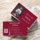 A burgundy coloured background. Personalize and add your photo, title, business name/name and text, contact information on front. White text.