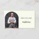 A classic ivory coloured background. Personalize and add your title, business name/name and text on front. Black text. An arch shaped photo frame.