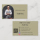 A sage green coloured background. Personalize and add your title, business name/name and text on front. Black text. An arch shaped photo frame.