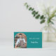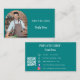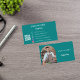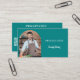 A teal, green coloured background. Personalize and add your title, business name/name and text on front. White text. An arch shaped photo frame.
