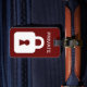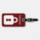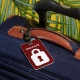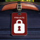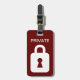 Private lock travel luggage tag with leather strap. Custom monogrammed tags for suitcases and bags. Personalize with your own funny text or name initials. Modern baggage labels with address on the back. Maroon red colour and font can be changed. Cool template design with simple typography and padlock logo. Double sided print. Unique gift idea for friends and family. Suitable for men, women and kids.