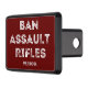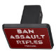 Pro Gun Control typography style trailer hitch cover with "Ban Assault Rifles. Period" text in white distressed font.