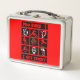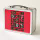 This is a standard metal lunchbox that appears to work just fine. We designed this box ourselves with an uploaded photo and custom text on the front and back. It looks absolutely beautiful except the front of the lunchbox is not centered like it shows in the photo. The print borders don't align with the inset flat part of the box where the preview photo online showed it perfectly centered in there. The back looks nice and centered though.