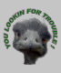 L'image drôle de visage d'une tête d'autruche avec 'SONT VOUS RECHERCHANT LE PROBLÈME "cerclé autour de la tête