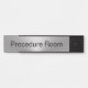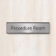 You can edit the black display text to show a custom message. (Shown: Procedure Room) The faux silver background is not made of metal.