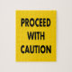 Proceed With Caution word lettering in black colour type on a road sign yellow background colour.