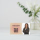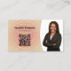 The design features a pastel spiral background, a photo placeholder with name, occupation and placeholder QR code on front. The back includes a coordinated background design, 3 dimensional heart and text fields for the business name and details. Replace the placeholder photo with your vertical format photograph and your QR code on the front. Fill in the template fields or click customize to select a font style, size, and colour you like.The placeholder photo is courtesy pixabay.com.