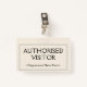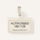 This professional badge design features the message "AUTHORISED VISITOR", and a customizable company name or other custom message. It also features a triple-line border. A badge like this could be used to identify that somebody at a workplace or business is an authorized guest/visitor. [~Z0000307]