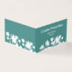 Professionally designed Real Estate business cards with a coastal theme created with palm trees in silhouette in a beautiful tropical teal background colour with your company name featured on your contact information organized for you to customize online. Presented as a bi fold business card layout.
