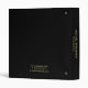 Make your business look more professional with this presentation folder features business details in gold classic serif font style on black background.