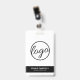 Custom black and white executive ID badge with your logo in a large format. Below is your name in bold along with your title over a black bar. A basic and plain design that still comes across as professional. The backside has your contact information and instructions for returning if found. This simple corporate employee badge is great for any type of business, big and small. DESIGN TIP: You may change the black bar to any colour you wish by clicking the "customize" button.