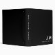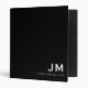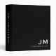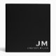 Modern professional binder features a minimal design in a classic black and white colour palette. Custom name presented in the lower right-hand corner in stylish simple font with complimentary monogram initials in bold classic block typography.