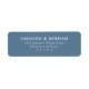 This return address label features a clean, centred layout with ample spacing between lines on a calming medium blue background. The design utilizes modern sans-serif typography in white for clear readability and a professional appearance. Its minimalist style emphasizes functionality without any decorative elements, making it ideal for formal correspondence. The customizable placeholders allow easy personalization for names, addresses, and zip codes, ensuring versatility for various uses.