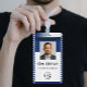 This professional employee photo ID badge is perfect for businesses looking to enhance security and professionalism. The clean design features a prominent space for a photo, employee name, and profession title, making identification quick and easy. The classic blue and white stripe pattern adds a touch of elegance, while the customizable area for your company logo ensures brand consistency. The reverse side includes essential contact information and a barcode for efficient tracking. This badge is designed to impress and function seamlessly within any corporate environment.