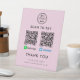 Boost your business's contactless payment options with this professional Cash App Venmo QR code scan to pay logo pedestal. Sleek and stylish, this sign is perfect for displaying at your checkout counter, restaurant table, or anywhere customers can easily scan and pay. Customize the design with your business logo and personalize it with a message.