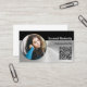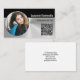 This business card front design features a photo placeholder with template name, occupation and QR code. The back includes a template field for the business name and details. Replace the placeholder photo with your photograph. The QR code link can send customers to your web page, photographs of your work, referrals or other page. Fill in the personalize fields, remove any text or edit using the design tool to select a font style, size, and colour you like. Choose from twelve paper styles. The placeholder photo is courtesy pexels.com.