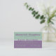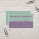 Trendy and stylish Professional Colour Duos business card design in pistachio and wisteria. This business card design would make the perfect first impression for someone in a professional occupation such as graphic or web design, finance, insurance and law--just to name a few. Easy to customize, simply add your personal information into the fields already provided. To customize this design further and give it a more personal touch, click the "Customize It!" button where you can change the text fields, fonts and text colours!