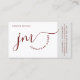 Professional Curvature Burgundy Script Monogram Business Card