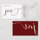 Modern Professional Curvature White and Burgundy Fancy Script Monogram Business Card.