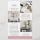 Attract a larger customer base to your business with marketing flyers! A professional template personalized with your logo, photographs, business headline or slogan, list of services, special offer, opening hours and contact information. Additionally you can add a QR code and more information on the reverse side. All the text can be customized, so you can include the details you want. Flyers and leaflets are an effective way to promote an event, increase sales, raise brand awareness and encourage repeat business! Printed colours: dusty rose pink, white and dark grey.