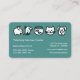 Pet care service business card template for a Veterinarian includes a dog, cat, bird, rabbit, and fish symbol. Designed so you can easily customize the design online and created for a pet hospital or Doctor of veterinary medicine. P resented on rounded corner business card paper stock.