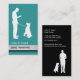 Professional dog training business card template including a dog trainer and obedient dog silhouette on the front and back in a smart two side design that includes two side printing, along with text layout and background colours you can easily customize to your liking. Best business cards for a dog trainer dog training school, or classes.
