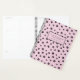 Simply elegant black and white professional pet sitter appointment book planner featuring black paw prints over a pink background.