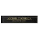 Professional Elegant Black and Gold Desk Nameplate featuring your information in gold classic serif font style.