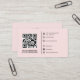 Modern QR Code custom logo and custom social media icons business card template. Template in a modern minimalist style on a blush pink background with simple text font style in black color and with your Website QR Code. The versatile template can easily be updated with your company logo, name, title, address, phone, email and social media usernames (for Instagram and Facebook) and QR Code. The icons can easily be replaced with the one you want or an added extra to make a truly bespoke professional design for your own business! When you personalise the template choose from the template layer the icons (twitter, pinterest, tiktok, snapchat, linkedin, youtube,) you want and make visible on your business card by clicking on them and remove or make invisible the icons you don't need on your business card.