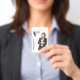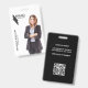 Modern, elegant and professional business id badge. Design features a cutout photo placeholder to display your own cutout business photo, your company logo, name and title on the front. Personalize further with your company details, qr code on the back. In order for the design to look like the sample template, upload your personal business photo with a transparent or white background in PNG format. Font, text size, colours can be customized.