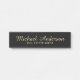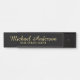 This hanging name plate features name in modern script font style and title in gold professional serif font style on black background.