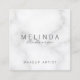 featuring name and profession title in grey modern sans serif font style and last name in grey modern script on white marble background, with contact information on back side.