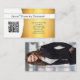 A gold with centre flare sets off the background of this business card design that features your QR code on the front and a custom photo on the back. Fill in the template fields or click customize to select a font style, size, and colour you like. Be sure to add YOUR QR code on the front and a vertical photo on the back. Use the QR code link to send customers to reviews, photos, your website or another important link.