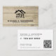 Simple modern beige barn wood business card with home repair tools logo and scanable QR code. ++++++++ Suitable for handymen, home repair businesses, remodeling, home renovation companies, and carpenters.