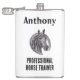 The mare sketch, your name, and "Professional Horse Trainer" appears on this flask. Quickly and easily personalize.