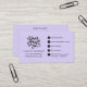 Create a modern minimalist professional lavender logo template business card with QR code and social media. The front includes your business name, logo area, phone number, email, website, address, location, and social media handles displayed with clean icons for quick scanning. The back features a bold QR code so clients can scan to visit your website, menu, booking page, portfolio, or online shop in seconds. Upload your logo, edit your name and contact details, add your social handles, and you have a polished, easy to read card that feels current and confident for content creators, influencers, creatives, entrepreneurs, realtors, salons, studios, consultants, and small businesses.