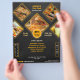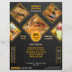 Choosing a professional and creative design for a flyer that shows your offerings to be included in your promotional materials as a fast-food chain or restaurant owner, will help your business boost its customer engagements and lead to more sales. Unlike those ordinary design layouts, this flyer features a unique visual arrangement of details, perfect to display food specialties. With the incorporated black textured background, cute shapes structure, black and yellow colour scheme selection and the cool fonts used, this marketing tool got the right aesthetic to catch the attention of the target customers. What's more interesting is that you can edit this template and customize it by adding your own menu lists, fast food photos, business contact information, restaurant location, email and website.