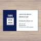 This is a simple sleek design to help you stand out from the crowd. The image THINK OUTSIDE THE BOX is on the left side of the card, on a deep navy background. On the right, enter your name and preferred contact details (also in deep navy)..