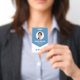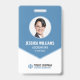 A professional and modern ID badge for company employee's and event staff. The design features an employee photo, as well as the staff's job title and ID number. It also shows your business logo, business name and tag line. All colours and fonts can be personalized to be suitable for your business or event.