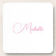 Professional modern handwriting name pink white coaster