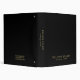 Professional Modern Presentation Binder featuring name in gold modern sans serif font style with profession in gold modern script font style with contact information on the back of the folder, on black background.