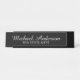 This desk name plate features name in white modern script font style and title in white professional serif font style on black background.