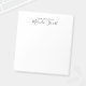 Professional Modern notepad featuring name in black modern script font style with custom text in black modern sans serif font style on white background.