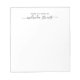 Professional Modern notepad featuring name in black modern script font style with custom text in black modern sans serif font style on white background.