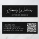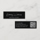 Elegant and professional black mini business card featuring your name in a modern white script. Input your website's URL address to create a scannable QR code. On the reverse side, add additional text (such as email, telephone numbers, firm name and mailing address) in simple white typography.