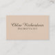 Elegant and professional, this minimalist hairstylist business card design features a soft beige background with classic black typography. The front showcases the name in a graceful script font paired with a clean sans-serif subtitle for “Hairstylist.” The back includes a QR code for quick access to your website or portfolio, along with neatly arranged contact details in a modern, easy-to-read layout. This business card is perfect for those who offer hair styling services.