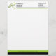 © Socialite Designs. Professional business letterhead design incorporates a two-colour header and footer, and a dark green header monogram. The green and black line in the header is movable and can be re-sized. Our design matches the Professional Monogram business cards.