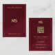 Custom Elegant Gold Text Modern Professional Monogram QR Code Bordeaux Mighty Size Luxury Signature UV Matte Vertical Business Cards. Perfect for Real Estate Agents, Accountants, Realtors, Brokers, Attorneys, Lawyers, Corporate Professionals, Stylists, Architects, Engineers, Directors, Managers, Consultants, Designers, Teachers, Musicians, all professions.