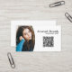 This business card design features a photo placeholder with template name and occupation and QR code on the front. The back includes coordinated design and colours with text fields for the business name and details. Replace the placeholder photo with your vertical format photograph and add your QR code. Fill in the personalize fields, remove any text or click customize to select a font style, size, and colour you like.The placeholder photo is courtesy pixabay.com.