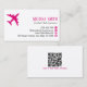 Professional QR Code Pink Plane Flight Instructor Business Card